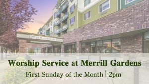 Every first Sunday afternoon, we minister to the residents of the Merrill Gardens in Renton by providing a worship service. Those interested in serving can contact Nancy Mayeno.